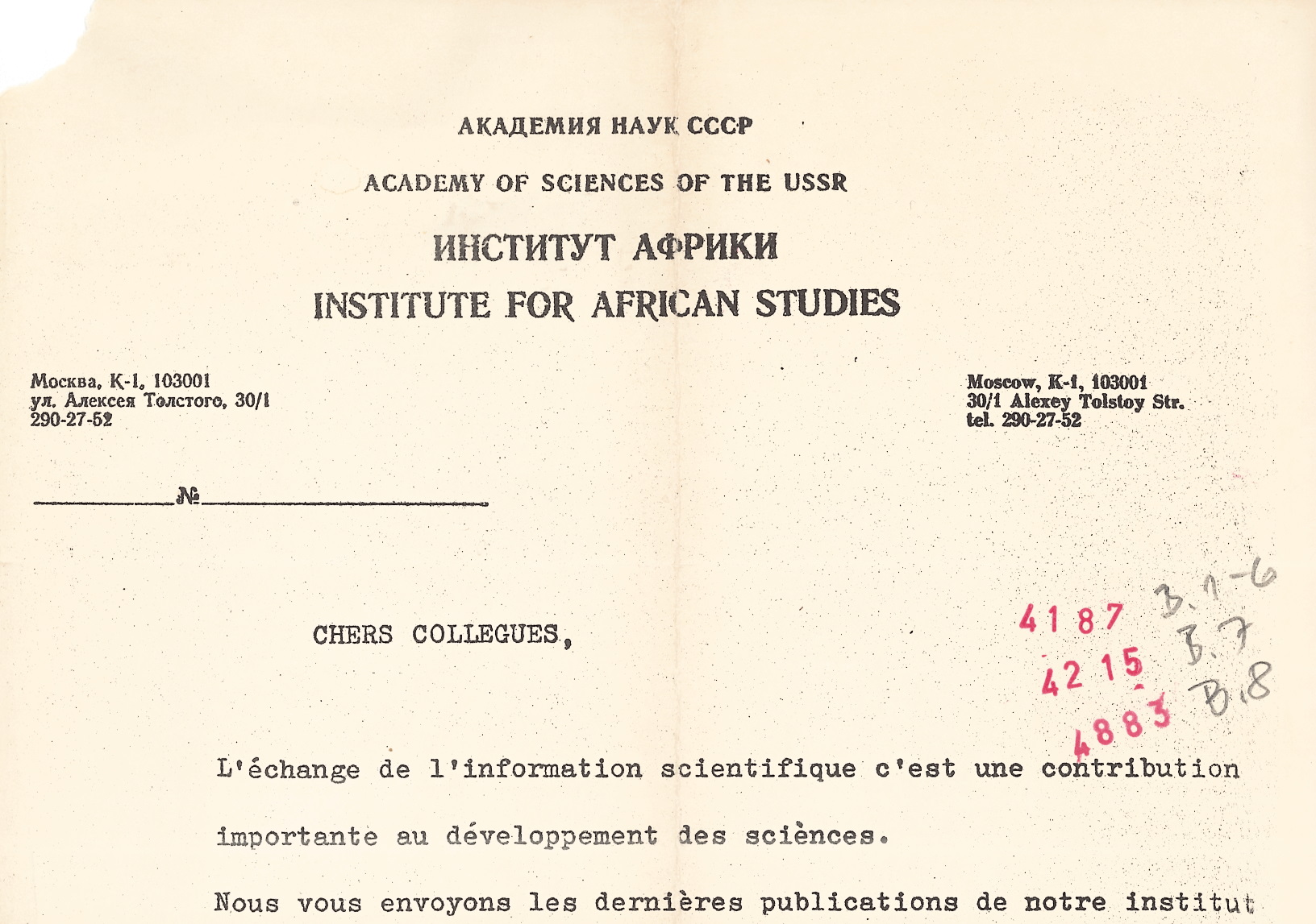 The former Soviet Institute for African Studies in Moscow (Russia) issued an annual periodical to which the BAB subscribed to at the time.
