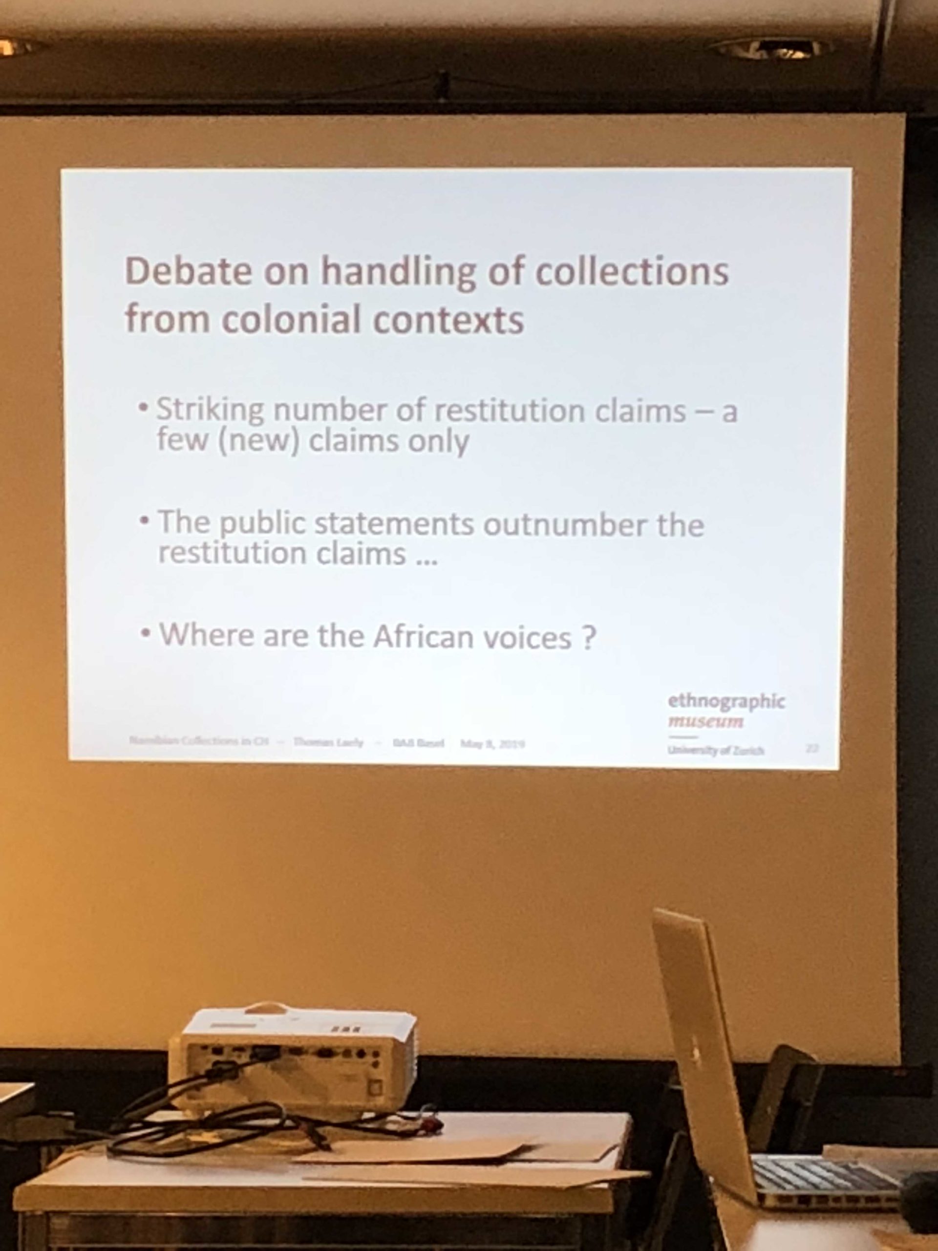 The workshop ‘Stolen from Africa? Restitution of Namibian Cultural Heritage in Switzerland’, run by the BAB in cooperation with the Centre for African Studies (CASB) at the University of Basel, the Musuems Association of Namibia (MAN) and the Völkerkundemuseum of the University of Zurich, led to lively discussions and a programmatic statement on the reappraisal of colonial museum collections in Switzerland with regard to the international debate on restitution.